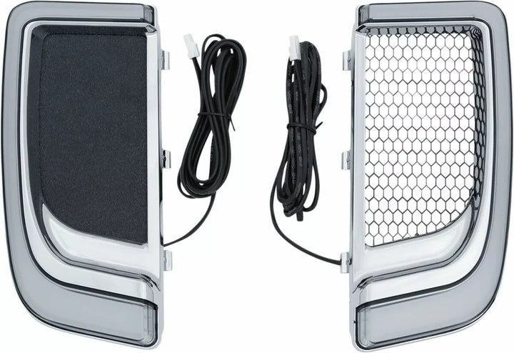 Laat de verhuizing van stocksignalen van het spatbord naar het kentekenplaat of zorg voor een handige plaats tot de mount Auxiliary Custom Lights, deze eenvoudige systeem monteert direct op de achterkant van de kenteken met ondersteuningsplaat en twee zijkant Brack Brack Achter achterste draai signalen of Küryakyn Silver Bullets