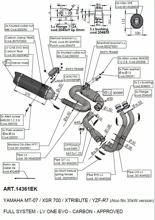 LV One Evo Carbon Fiber, The Leovince LV One Evo Carbon is de synthese tussen traditie en moderniteit. Het combineert de klassieke stijl van Leovince -stijl en innovatie in het onderzoek van de meest presterende en lichtgewicht materialen. Resisterende verpakking (1.650 ᄚ F), verstelbare volledige koolstofbevestigingsband