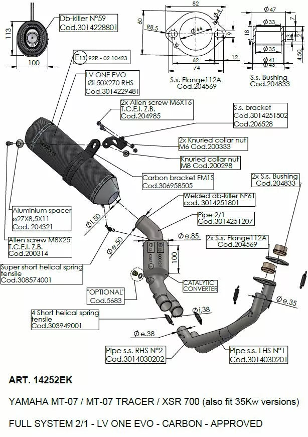 LV One Evo Carbon Fiber, The Leovince LV One Evo Carbon is de synthese tussen traditie en moderniteit. Het combineert de klassieke stijl van Leovince -stijl en innovatie in het onderzoek van de meest presterende en lichtgewicht materialen. Resisterende verpakking (1.650 ᄚ F), verstelbare volledige koolstofbevestigingsband