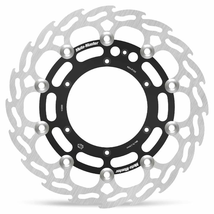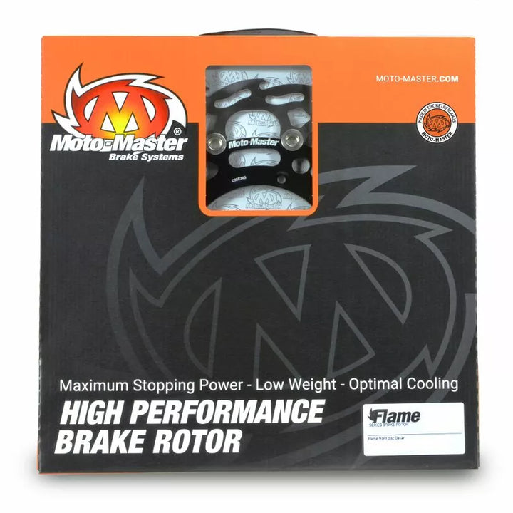 , Oversized, volledige zwerm MX voorrotor met zwart geanodiseerde, lasergemarkeerde drager, lichtgewicht roestvrijstalen drijvers en een roestvrijstalen vlamontwerp buitenring in een diameter van 298 mm