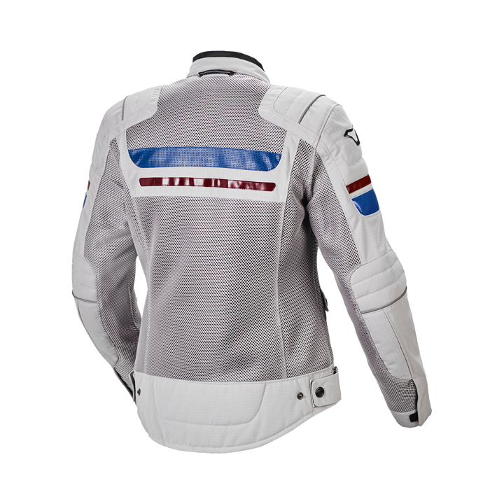 Motorjas macna, vloeiende vrouw lichtgrijs/blauw/rood