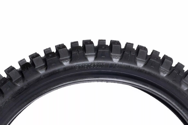 De nieuwste toevoeging aan de MOTOZ MX Tyre Range is de Terrapactor MXI (MX Intermediate) Competition -band. Ontwikkeld met een lichtgewicht karkas en ontworpen om uit te blinken in tussenliggende tot hard terrein (mix van losse en verpakte grond, hard verpakte grond en diepe zware sporen). De benchmark voor MX -bandenprestaties over meerdere soorten terrein!, Valt de MXI -band op met zijn onderscheidende patroon, specifiek vervaardigd om topprestaties te leveren. Door strategisch flexpunten in het karkas en de knoppen op te nemen, biedt de MXI -band voorspelbaarheid en verbeterde hoekgreep, aanpassen en buigen volgens het terrein om meer controle en vertrouwen te geven tijdens het rijden. Hardgepakte grond en diepe zware sporen), volledig bereik van mini-cross tot grote fietsen (15 verschillende maten), twee voorbandenmaten, 80/100-21 voor de meest agressieve op de baanprestaties en de geheel nieuwe 90/100-21 met een groter profiel voor verhoogde omstandigheden, unieke flexzones ingebouwd in karkas en knobbels voor verbeterde flexzones in het velen en combineren in het kookholte, helemaal Voor verbeterde naleving