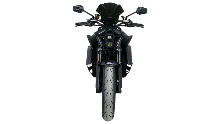 De MRA Racing -voorruit (NRM) is 5 cm hoger dan de MRA Sports Ruitenwind (NSPM) en biedt meer windbescherming. Ondanks zijn langere lengte past het perfect bij het algehele ontwerp van de superdoek. Beschikbaar in helder, rookgrijs en zwart.