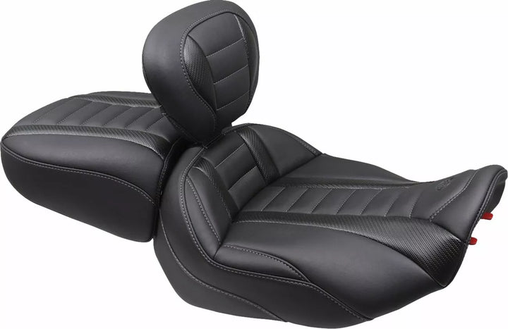 Features Deluxe Pattern With An Eye-Catching Carbon Fiber Inlay, Passenger Seat Offers Significant Improvement Over Stock With 12 "Pedestal Style, Providing the 2-Up Rider A Much More Comfortable Seating Area, Mustang's Proprieta Formary Controlled And Support After Years of Use, Marine-grade FIBERGLASS BASEPLATE FOR LONG-LASTING SUPPORT AND DURABILITY, WITH Polyurethane Bumpers to Absorb Vibration, High-Quality Expanded Vinyl Cover That Offers The Appearance of Leather en duurzaamheid om te schrijven