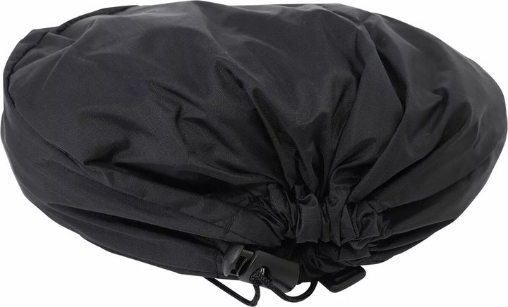 Water-repellente zwarte nylon deksel vouwt op in een geïntegreerd opslagzakje, houd de stoel van uw fiets beschermd tegen waterschade, past op standaardstoelen, gemaakt in de VS.