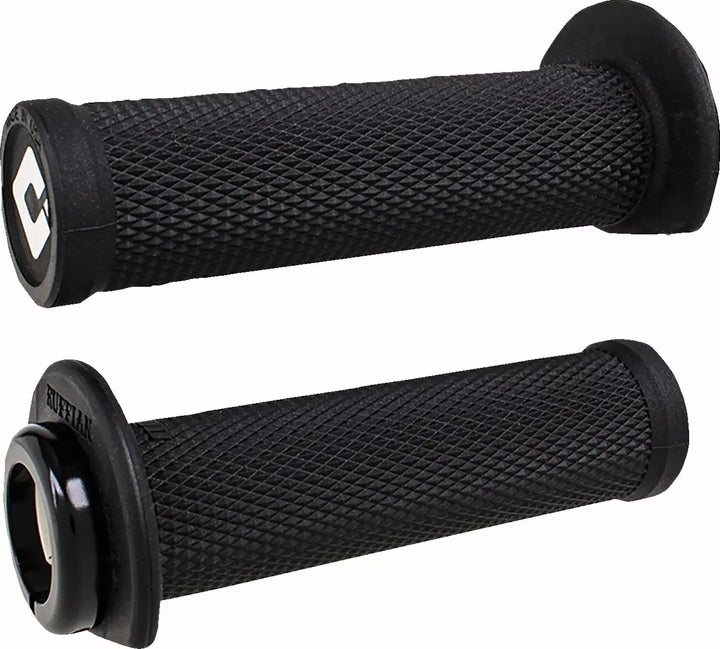 Exclusive 3/4 Flange Design Protect Hands and Dairs Access To Thumb-Throttle, Full Diamond Pattern Provides Slim Profile and Excellent Traction, Low-Profile Grip Delivement Exceptional Control Designed Specifically For Racing, 125 mm Length with a low profile 29 For Easy, Knock-Out-Ends for Full-Wrap Hand Guards, Preinstalled ODI V2.1 Lock-Jaw Single-Clamp With Screws Eases Installation, Lock-On Grip System ™ Design Delivers Easy Installatie en zorgt voor 100% slipvrije prestaties