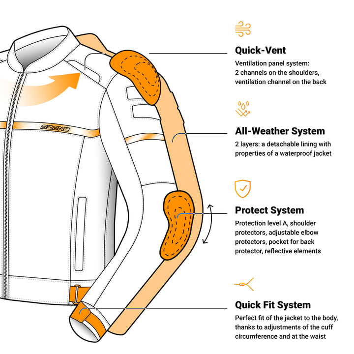 Ozon Ruiter is De perfecte MC -jas voor stads rijden en touren, met de zijne Waterdichte en verwarmende binnenvoering, CE -gecertificeerde bescherming en goede ventilatie. Maten tot 13xl Maak het beschikbaar voor alle bestuurders.