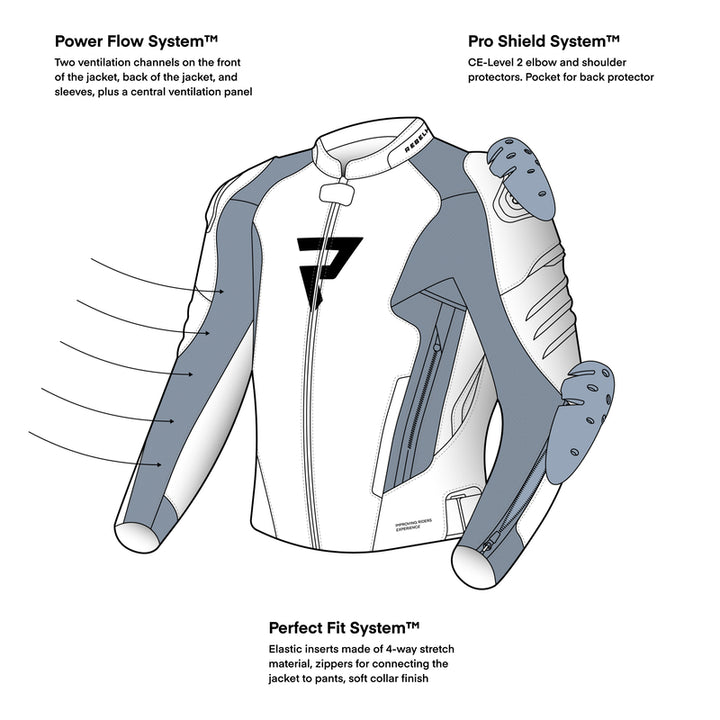 Het motorjack Rebelhorn Veloce biedt, dankzij de goed doordachte gesneden, comfort voor dagelijks gebruik en voor touren voor degenen die de voorkeur geven aan de veiligheid die wordt aangeboden door lederen kleding. In combinatie met de Veloce-broek creëert het een tweedelig kostuum. Het gebruik van 4-weg stretch-inzetstukken zorgt voor een optimale pasvorm. De jas heeft ook een geavanceerd ventilatiesysteem.