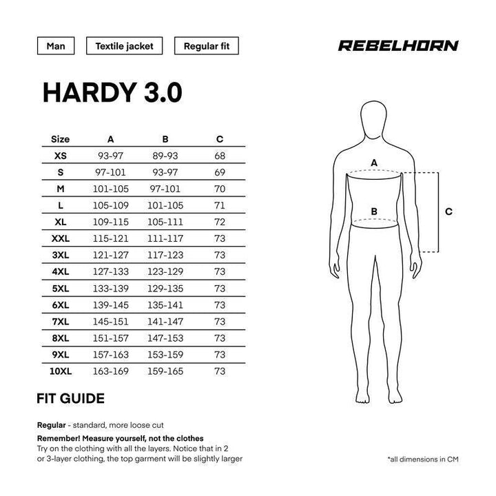 Klaar voor alle wegen, alle weersomstandigheden en alle avonturen - Rebelhorn Hardy 3.0 Is het touringjack dat comfort, bescherming en functionaliteit naar een geheel nieuw niveau brengt. Het is gebouwd voor degenen die regen, hitte of lange mijlen niet in de weg staan van de volgende beurt. Met zijn geavanceerde 3-winkels systeem past Hardy 3.0 soepel aan zowel aan het klimaat als de rijstijl, of je naar Noord-Kaap rijdt of een zondagsreis in de regen maakt.