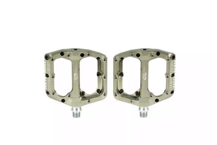 Introductie van de Revo-F platte pedalen van Renthal. , Met een diep concaaf platform, de Revo-F biedt ongeëvenaarde ondersteuning en tractie., Groot parallellogram lichaamsprofiel., Tunable pinhoogte in stappen van 1 mm van 2,5 mm tot 5,5 mm, hoogwaardige chromoly as. IgUS -bus en volledig contact en lage wrijvingsboordhoofdafdichting., Plus, volledig bruikbaar in minder dan 3 minuten met behulp van standaardgereedschap.