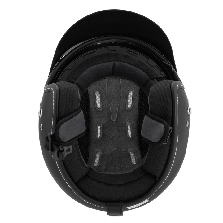 - Leer omringend met gedetailleerde steek: Voor een exclusief gevoel en stijl is de helm uitgerust met een mooie lederen scope die zorgvuldig wordt genaaid om een hoge kwaliteit af te sluiten.