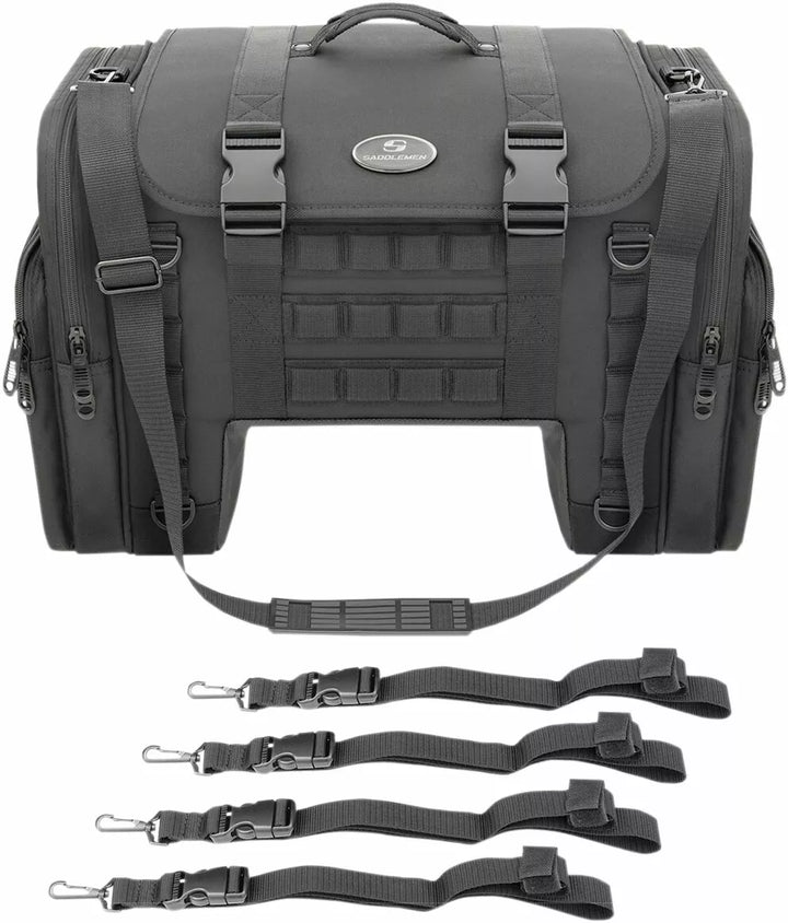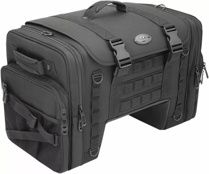 Sterke, nylon meshing rits tanden met zwarte schuifregelaars uitgerust met grote trekkers voor eenvoudig gebruik met een gehandschoende hand, oversized montagieringen rond de tas overwinnen unieke montageproblemen, tech organisator is perfect tussen de ruiter en het tourpakket, gebouwd van UV-, water- en weersisten 13.5 "H x 11" D, houdt vorm, zelfs wanneer leeg, meerdere externe zakken