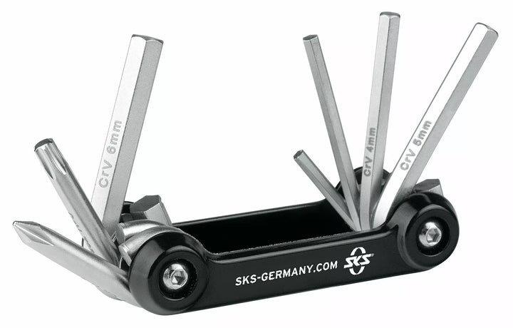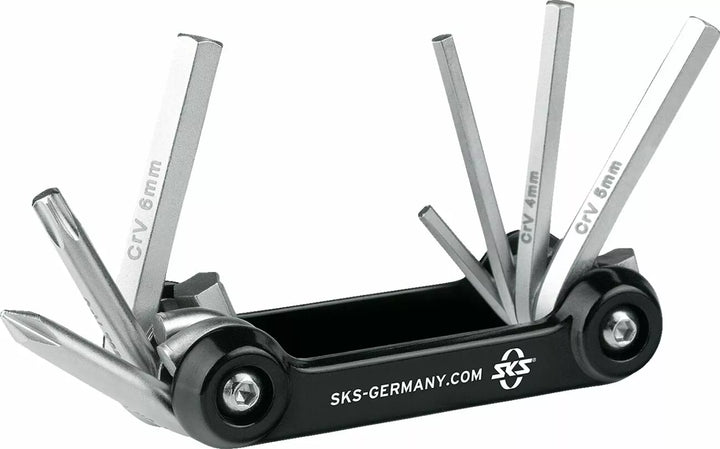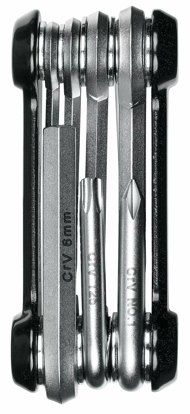 Het slanke Tom 7 Mini -gereedschap gemaakt van roestvrijstalen chroom vanadiumgereedschap staal combineert de belangrijkste gereedschapsfuncties in een extreem compact ontwerp., Met de 7 geïntegreerde functies, zoals een Allen -sleutel, schroevendraaier en Torx -sleutel, veel reparaties aan uw fiets. , De multifunctionele tool kan handig zijn in de meegeleverde neoprene-tas.