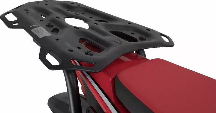 Extreem robuust rek voor lange rondleidingen en off-road ritten, exclusieve productieprocessen en de geoptimaliseerde vorm zijn een extra dosis stabiliteit aan het rek, de extreme duurzaamheid tijdens trillingen, effecten en hooggewicht werd getest in het lab en off-road tijdens de zwaarste conditgevallen. Sysbag met adapterplaat zijn afzonderlijk verkrijgbaar met de juiste adapterkit, biedt adapterpakketten voor het bevestigen van topklasse van Givi, Krauser en Shad, gemakkelijk op te zetten Bagage van bagage op talloze, grote sjorrende ogen, schroefdraad van 25 mm bevestigingen (widde: 32,9 cm aan de voorkant, 22,5 cm bij de achterkant: 30,3 cm), gemakkelijk inloper op het originele bijlat.