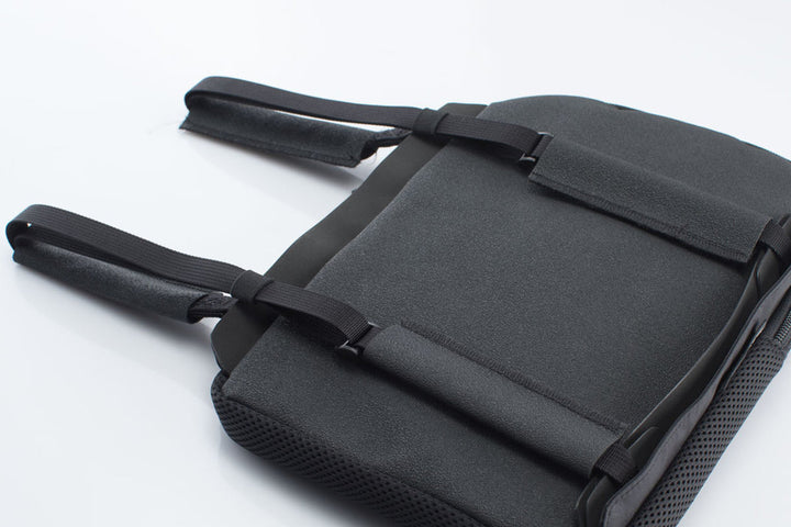 Relief voor achterkant en achter., Voorkomt gevoelloosheid en pijnlijke drukmerken., Vermindert warmte en zweet opbouw met ademende afstandsstof van de deksel en interne vulling met onderling verbonden luchtweven., Twoular hoge trillingen. Tethers met ROK-riemen en niet-slip-onderkant voor precieze positionering., Anti-diefstal bescherming door bevestiging onder de stoel., Oppervlak gemaakt van robuust, twee-elastisch kunstmatig leer voor extra zitcomfort., Waterdichte polyurethaanluchtkussen.
