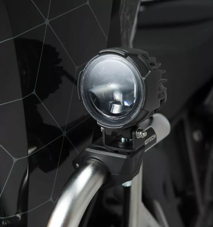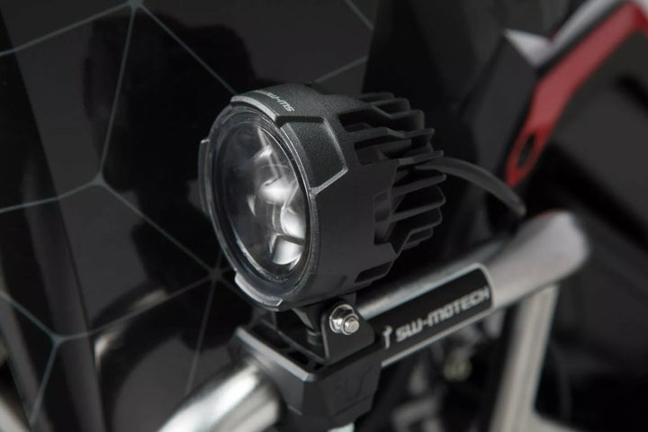 EVO High Beam Lights are ideal for riding long distances in/off road conditions where maximum beam distance is desired to increase visibility and safety, evo lights represented outstanding design, high-quality standards and reliable waters and dust protection (IP69) Trouble-free and maintenance-free operation for years, Trouble-free and maintenance-free operation through wear-free LED, Consuming Significant Less Power, Input Voltage: 12 V DC, LED: 12 W (Per Light), Luminus Flux Flux Buitendiameter: 7,1 cm, water- en stofbestendig (IP69), rechtstreeks verbindt met de motorfiets, geen wijzigingen op de motorfiets Elektrisch noodzakelijk, weerbestendig, verlichte blauwe stuurschakelaar voor eenvoudige hand 27, 28 mm) of op fietsspecifieke lichtbevestigingen voor frame-montage (afzonderlijk verkocht), Inbegrepen: 2 Evo High Beams, kabels, kabels, schakelaar, schakelaar, montagemateriaal, montagemateriaal