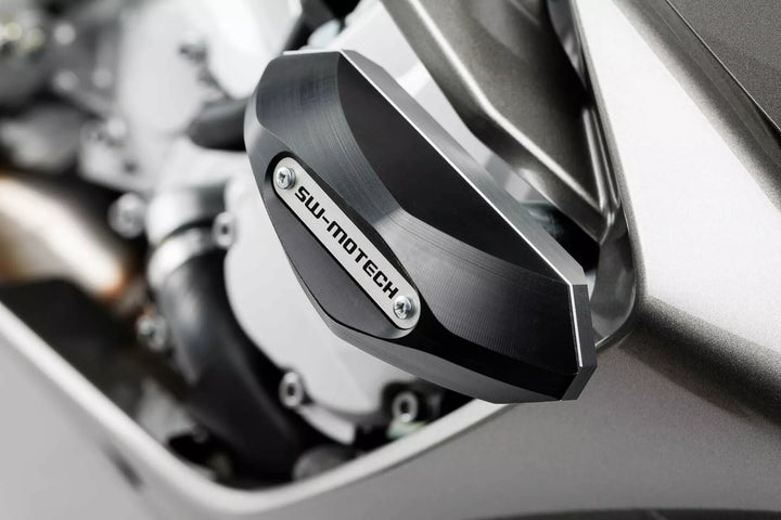 Frame Crash Pads Provide Additional Protection in the Event of A Fall, The Shape, Surface and Materials of the Pads Provide Excellent Sliding Properties to Reduce Damage to the Motorcycle, The Robust Aluminum Mounting Bracket Is Easy to Install, and the Abrasion Prazion Prazion Protection of the Frame, Engine and Fairing, Well-Shaped, Exchangeable (IF Needed) Slider Pad Made of Abrasion-Resistant Polyamide, Large Contact Surface for Best Possible Force Distribution, Optimized Surface van goede glijdende eigenschappen, aluminiumlegering, eenvoudige montage en stevige frame-bijlage dankzij fietsspecifieke add-on-elementen, inbegrepen in levering, 2 x crashkussens, montageducaties, montagemateriaal