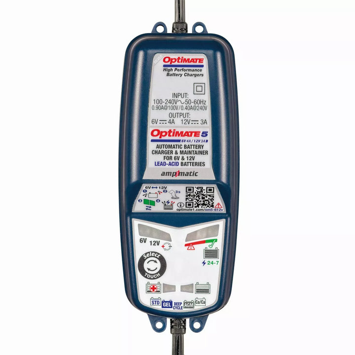 OPTICATE 5 6V / 12V Silver Series: 8-STEP 6V 4A / 12V 3A Sealed Battery Saving Charger & Maintainer., The Smarts Charger for All 6V and 12V LEAD-ACID Batteries-Great for Deep Cycle Batteries!, Ideal for 6V and 12V Batter) Leaf Cycle and Starter (SLO) Craft and Equipment Above., Select the Right Charge Voltage for Your 6V or 12V Lead-Acid Battery-Selection Remains in Memory Even IF AC Power is Verloren., Volledig automatisch multi-step-programma brengt de batterij Soday naar volledige lading-verbinding-verbinding-verbinding tussen verbinding tussen verbinding tussen verbinding tussen verbinding tussen connect-connect-connect-connect-connect vereist!, Ampmatisch: past automatisch de stroom aan om te passen bij de batterijgrootte en -conditie., Veilig om verbonden te blijven. Volledige elektronische bescherming., 24/7 onderhoudt batterij bij volledige lading en goede gezondheid., Saveert uw 'dode' batterij van zo laag als 0,5V., S.O.H.: Tests batterijstoestand van gezondheid. Vereist gebruikersbevestiging., Groene technologie: energiebesparende technologie, stand-by stroom minder dan 0,5 W en efficiënt 24-7 batterijonderhoud., IP54: weerbestendig. Rated voor gebruik tot -40 ° C / -40 ° F.