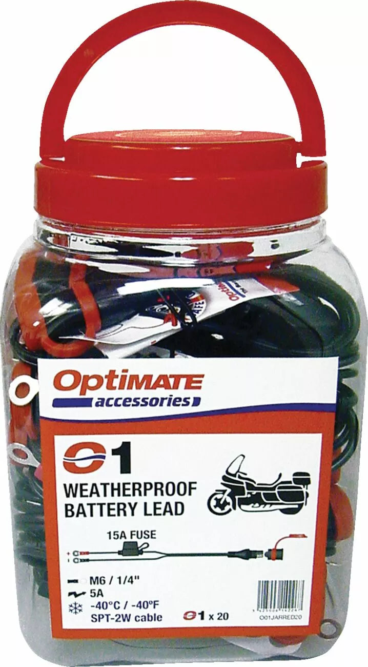 Premium Quick Connect Permanent Battery Lead voor uw batterij, rubberen afdichtingsdop en mantel voor optimiet zware SAE-connector, 40 ° C/-40 ° F Zeer lage temperatuurgebruik; De kabel blijft flexibel bij 'onder vriestemperaturen', industrie standaard 2-polige SAE SAE-connector, kabel max. Beoordeling: 5 amp, 1/4 " / m6 ringjes, 15 een zekering