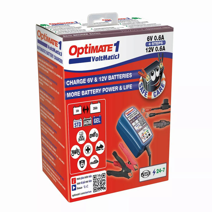 Opticate 1 voltmatische bronzen series: 4-stappen 6V / 12V 0.6A batterijlader en onderhoud., De volledig automatische batterij mainainer voor uw 6V of 12V loodzuurbatterijen-garanties meer batterijvermogen, langere levensduur van de batterij. Gel)., Levert 0,6 ampère laadstroom aanbevolen voor het onderhoud van kleinere batterijen., Kosten en levert onderhoud op lange termijn. Verbind met de batterij en optijd 1 voltmatic doet de rest, geen toezicht vereist., Voltmatic: 6V of 12V ladingsmodus selectie volgens de batterijspanning., Dust proof plug in geval stijl., Veilig om de verbonden volledige elektronische bescherming te laten., Lage volt start van 4V. Groene technologie., Energiebesparende technologie -BESTAND -SCHAP Minder dan 0,5 W -efficiënt 24-7 batterijonderhoud., IP50: weerbestendig -beoordeeld voor gebruik tot -20 ° C / -4 ° F.