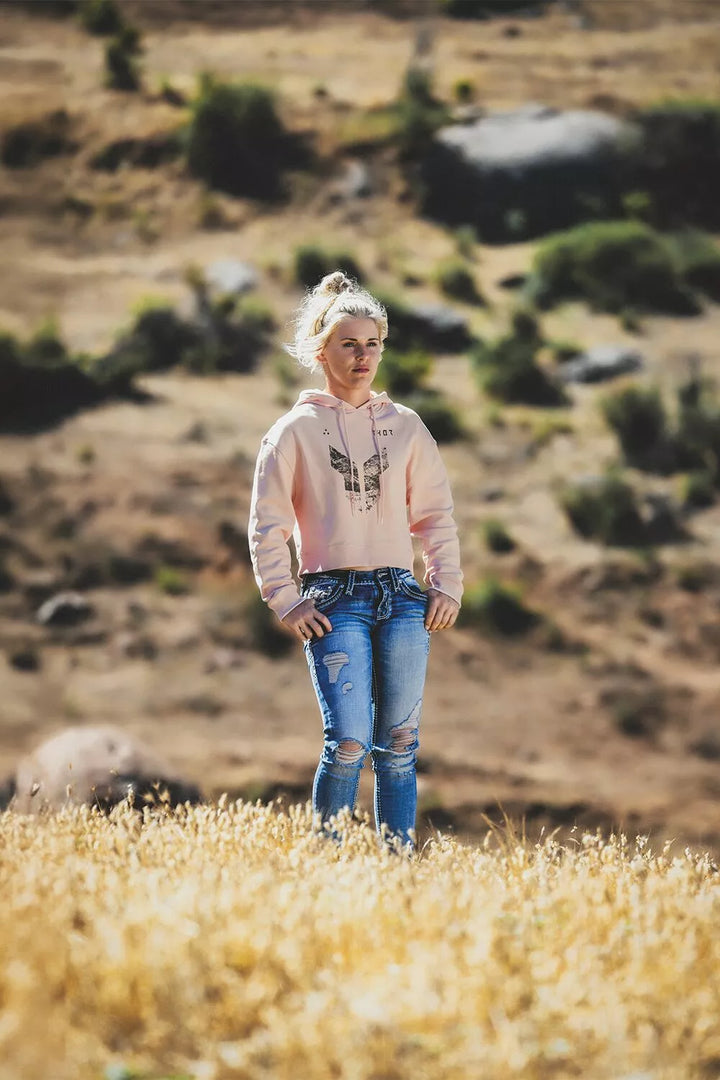 Zwaargewicht, Franse Terry bijgesneden lengte sweatshirt met capuchon met schermgedrukte afbeeldingen