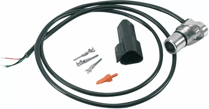 Chrome Billet -sensor, omvat OEM Deutsch -connector, voor gebruik met stock -length startersmotor op de meeste '96 -'03 Big Twin -modellen, gemaakt in de VS.