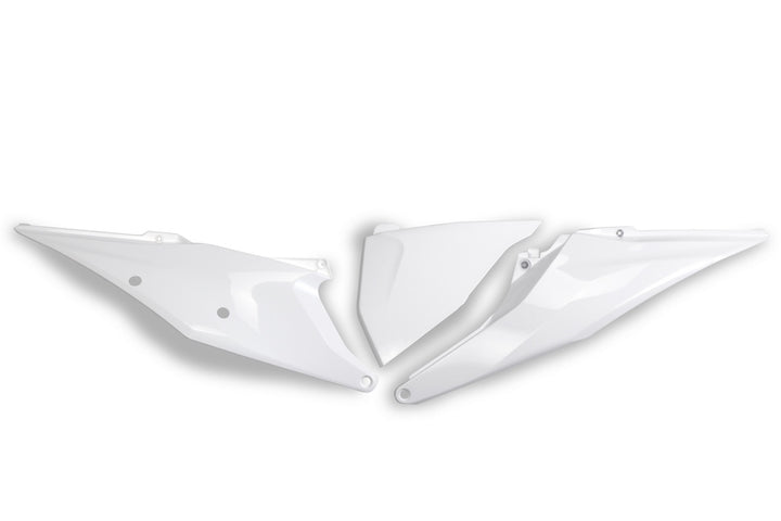 UFO-kunststoffen staan ​​bekend om hun kwaliteit en hun weerstand tegen off-road gebruik. Ze zijn ontworpen als OEM -kunststof en zijn gemakkelijk te monteren. Ze worden gebruikt door MXGP -topteams van vandaag en vormt wereldkampioenen. OEM TypeMade van UV, choc en torsiebestendige geïnjecteerde plastic kleur: wit
