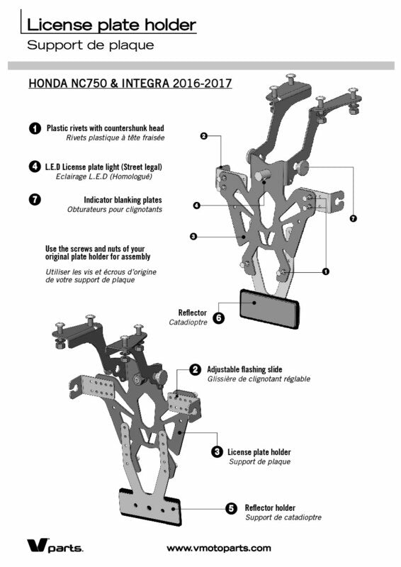 V onderdelen kentekenplaathouder zijn vervaardigd in Frankrijk. Inconspicouse en perfect afgewerkt, ze zijn specifiek ontwikkeld voor de bijgevoegde fietstoepassingslijst. 2 mm dun maar stevige stalen kentekenhouder zwarte epoxy paintingcnc vervaardigd - laser gesneden: precieze afwerkingsgaten om kenteken, indicatoren en kentekenverlichting te repareren gemaakt in Frankrijk inhoud: straat juridische licentieplatverlichting, Gecertificeerd Meer info: geoptimaliseerde en discrete kabel doorgang en eenvoudige montageAdadable indicatoren