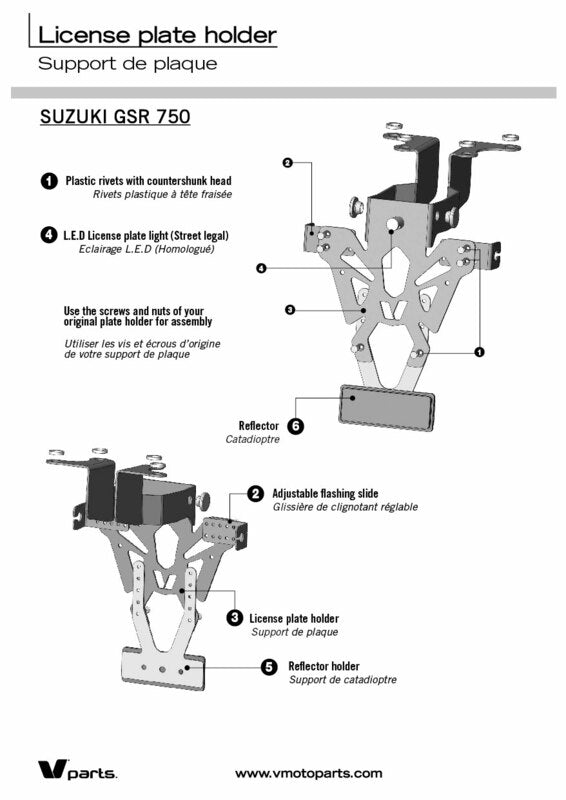 V onderdelen kentekenplaathouder zijn vervaardigd in Frankrijk. Inconspicouse en perfect afgewerkt, ze zijn specifiek ontwikkeld voor de bijgevoegde fietstoepassingslijst. 2 mm dun maar stevige stalen kentekenhouder zwarte epoxy paintingcnc vervaardigd - laser gesneden: precieze afwerkingsgaten om kenteken, indicatoren en kentekenverlichting te repareren gemaakt in Frankrijk inhoud: straat juridische licentieplatverlichting, Gecertificeerd Meer info: geoptimaliseerde en discrete kabel doorgang en eenvoudige montageadjustable indicatoren