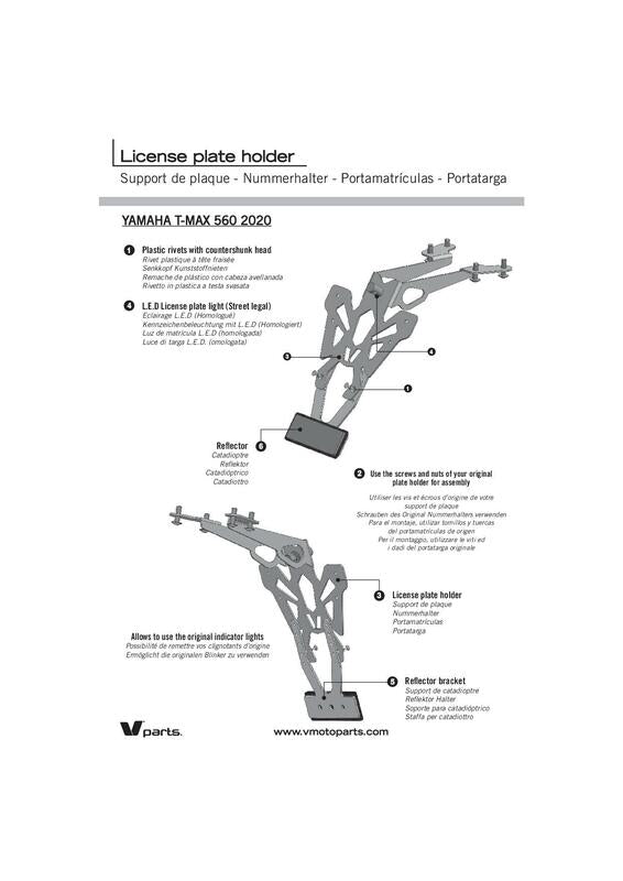 V Onderdelen Kentekenplaathouder Zwart Yamaha T-Max 560 C8-PY034