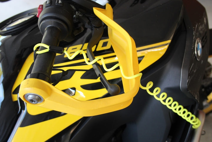 Vector herinneringskabel is een Soepel en zichtbaar veiligheidsaccessoire Dat helpt u te onthouden om uw schijfremvergrendeling te verwijderen voordat u wegrijdt. De neon gele kleur Maak de kabel extra zichtbaar, wat het risico op schade aan uw motorfiets vermindert.