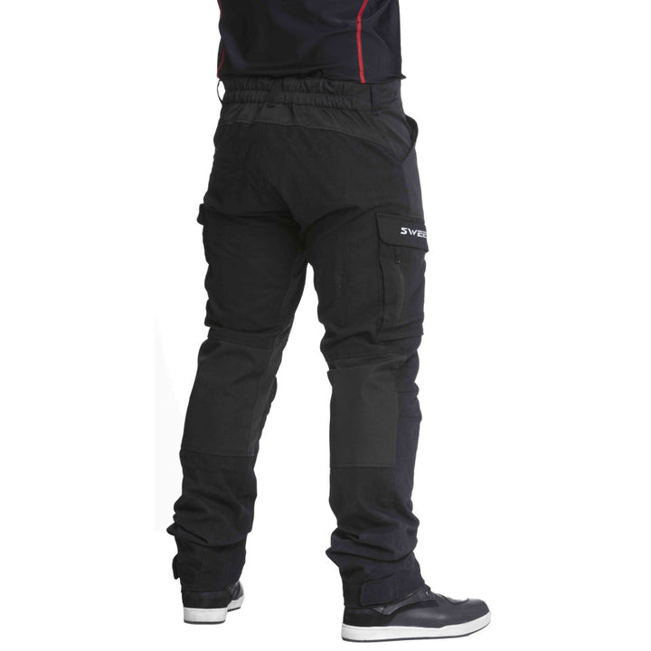 Sweep Aramid MC -broek Chief biedt een ontspannen gevoel en uiterlijk, terwijl hij uitstekende mobiliteit en een comfortabele pasvorm biedt. Deze veelzijdige broeken zijn perfect voor zowel motorfietsreizen als andere activiteiten waar u een duurzame en beschermende broek nodig hebt. Ideaal voor stedelijk en zomergebruik.