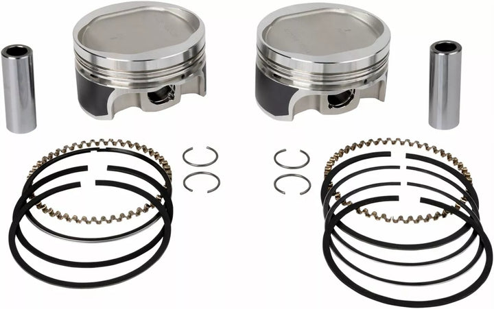 Forged Piston Crown with Genrous Valve Pockets for Big Valves and Cams, Precision-Fit Rings Selected for Each Application for Ultimate Sealing, Force-Fed Pin Oiling Provides Enhanced Lubrication of the Piston Pin, Power Power Lights, Ring Linduces Rima, Coating Reduces Friction, Providing Quiester Operation and Improving Scuff Resistance, Valued-Packaged with Two Pistons, Rings, Piston Pins and Circips, Zuiger is gemaakt in de VS.