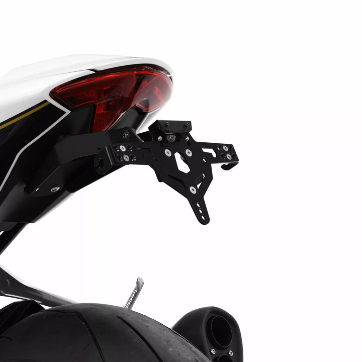 De kentekenplaathouder is extreem duurzaam en weerbestendig., Zwart poeder bedekt. , De kentekenplaathouder kan worden gebruikt voor elke soort kenteken (175 mm breedte)., Geen wijziging van de vereiste kuip., Stepless aanpassing van de harkhoek., Indicatorondersteuning in 3 posities. Plaat., Speciale indicatorlichtmounts (afzonderlijk verkocht) vereist voor stockindicatorlichten., Kit omvat: 1 kentekenplaathouder incl. Montagekit., LED -kentekenlampje "e goedgekeurd" incl. Ondersteuning., Licht terug met ondersteuning.