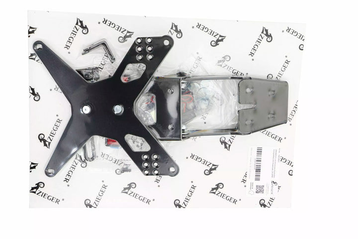 De kentekenplaathouder is extreem duurzaam en weerbestendig., Zwart poeder bedekt. , De kentekenplaathouder kan worden gebruikt voor elke soort kenteken (175 mm breedte)., Geen wijziging van de vereiste kuip., Stepless aanpassing van de harkhoek., Indicatorondersteuning in 3 posities. Plaat., Speciale indicatorlichtmounts (afzonderlijk verkocht) vereist voor stockindicatorlichten., Kit omvat: 1 kentekenplaathouder incl. Montagekit., LED -kentekenlampje "e goedgekeurd" incl. Ondersteuning., Licht terug met ondersteuning. Disclaimer: Belangrijk: voor het gebruik van deze kentekenplaathouder met de OEM Turn -signalen van Ducati -modellen (2015 - Huidig) is een speciale houder nodig (Zieger Turn Signal Adapter en Duc. Parts Europe Onderdeelnummer: 20301971. Vendornummer: 10005790).