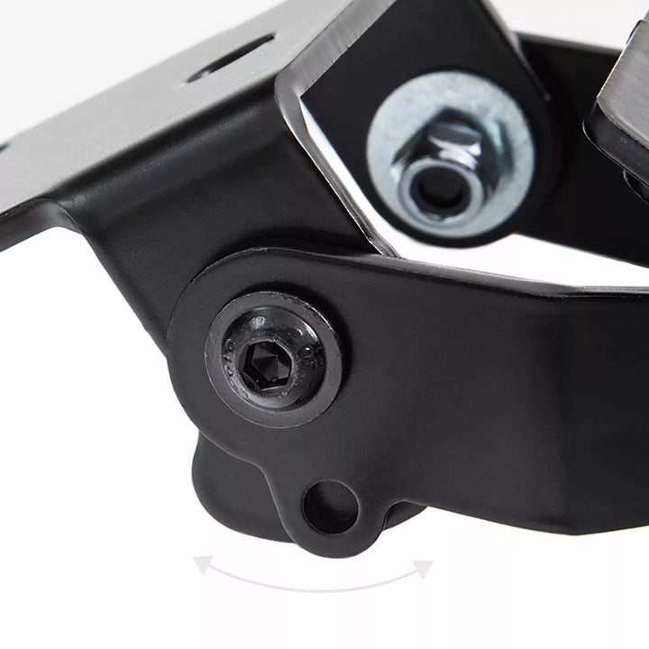 De kentekenplaathouder is extreem duurzaam en weerbestendig., Zwart poeder bedekt. , De kentekenplaathouder kan worden gebruikt voor elke soort kenteken (175 mm breedte)., Geen wijziging van de vereiste kuip., Stepless aanpassing van de harkhoek., Indicatorondersteuning in 3 posities. Plaat., Speciale indicatorlichtmounts (afzonderlijk verkocht) vereist voor stockindicatorlichten., Kit omvat: 1 kentekenplaathouder incl. Montagekit., LED -kentekenlampje "e goedgekeurd" incl. Steun. Van: Zwitserland, Polen en Ierland.